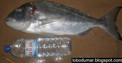 o velhaco com cuidado e esperar pela oportunidade de o rebocar para cima, pois estava a pescar com um 0,20 no carreto e o nó do chicote andava ali nos passadores para cima e para baixo e não havia meio de conseguir fazê-lo entrar no carreto . “Bom já